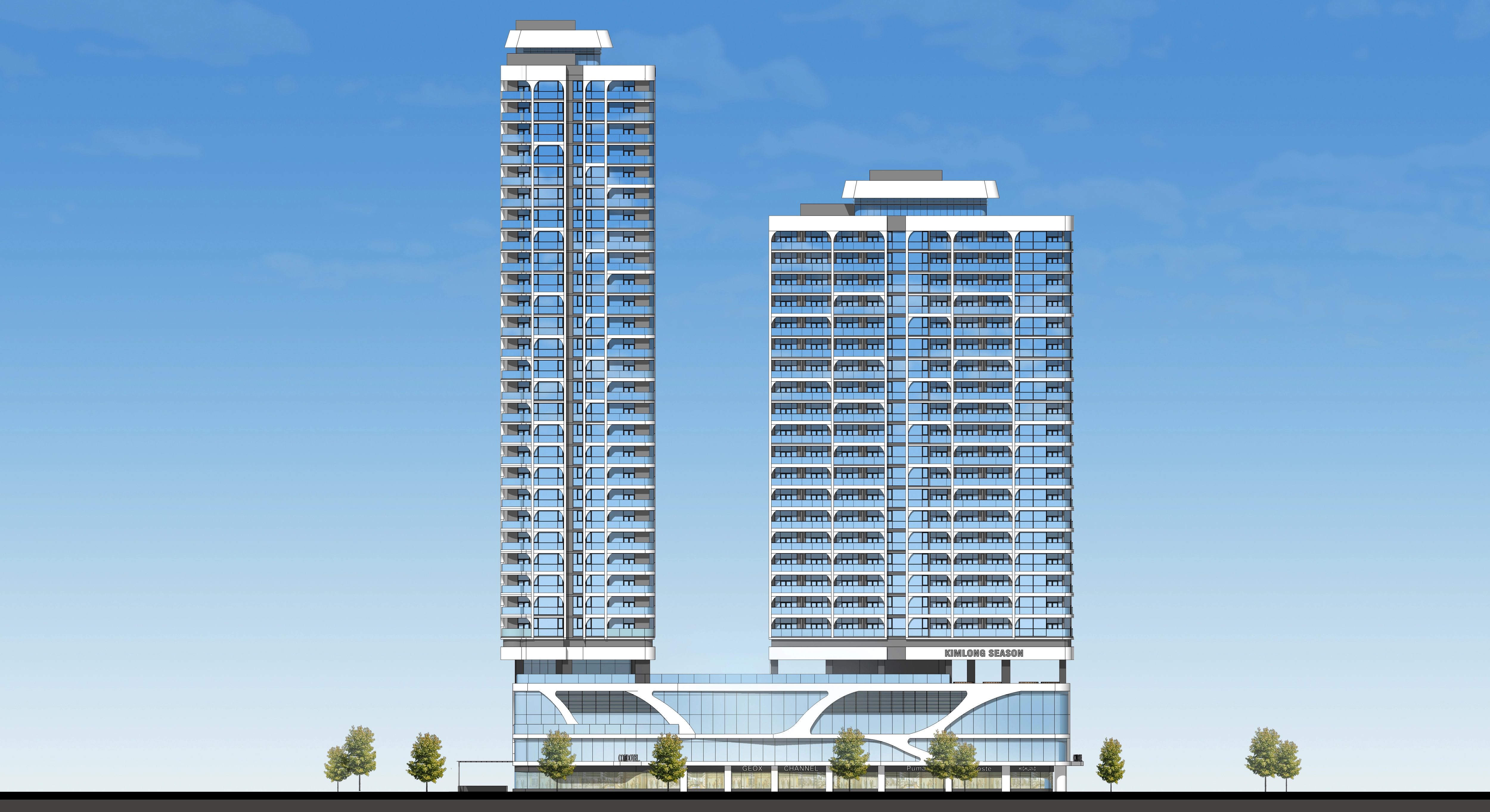 ➡️ Tầng 1-3: Khối đế bao gồm sảnh đón, shophouse khối đế, nhà trẻ, hội trường, phòng sinh hoạt cộng đồng,...